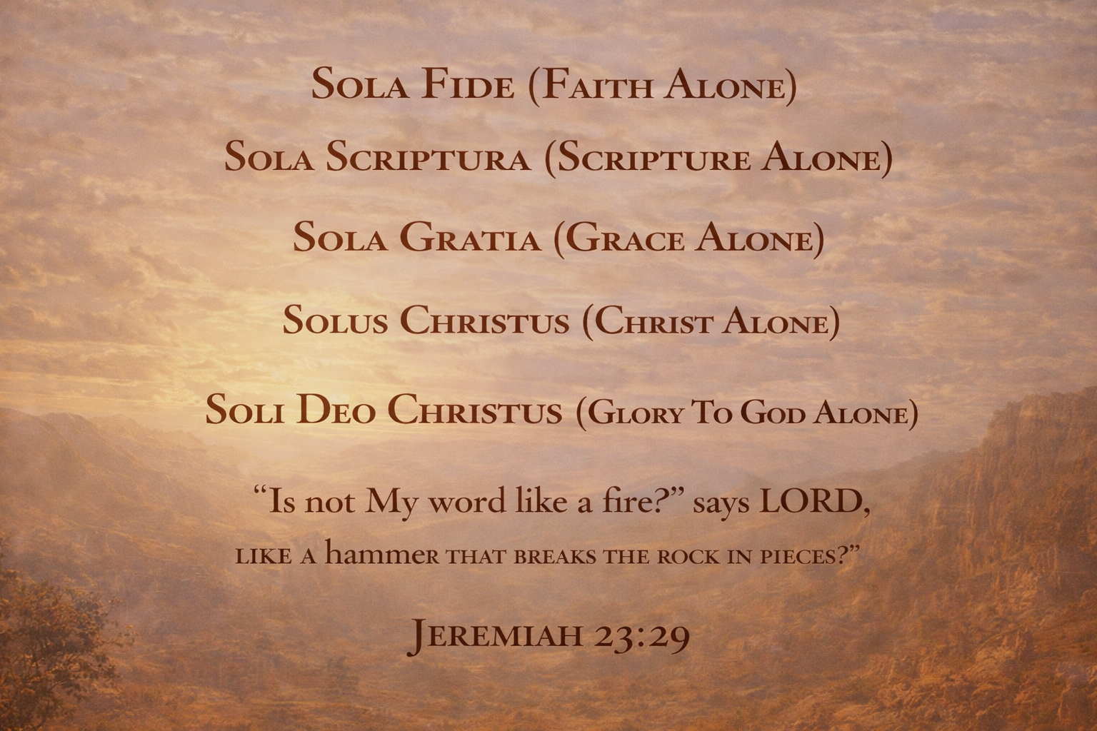 We believe in the 5 solas (means “alone”) of the Protestant Reformation. These Latin phrases are: